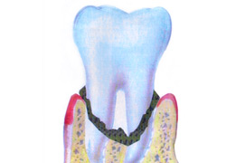 Nennt man eine chronische, oft unbemerkte Entzündung der Zahnfleischtaschen und des Knochens um die Zähne. Ursachen sind anaerobe Bakterien die sich in der Tasche an verkalkten Speiseresten anlagern. Die Bedingungen sind hier für die Mikroorganismen ideal, kein Sauerstoff, ständig neue Nahrung, die körpereigenen Abwehrkräfte können nicht zum Infektionsort gelangen, da im Zahnstein die notwendigen Venen und Arterien fehlen.