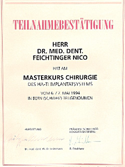 Profitieren sie von meiner über 25-jährigen Implantaterfahrung und den kontinuierlichen Fortbildungen auf diesem Gebiet (z. B. Masterkurs Chirurgie Prof. Ledermann Bern/ Zertifizierung Dentalschool Tübingen Prof. Hahn etc.). Ob Sie ein einzelnes Implantat benötigen, um die substanzraubende Präparation der Nachbarzähne für eine konventionelle Brücke zu vermeiden oder ob Sie eine festsitzende Lösung zum Ersatz aller Zähne benötigen, wir werden immer eine maßgeschneiderte Lösung für Sie finden. Wir verfügen über die neueste 3-D Planungssoftware, die mit höchster Sicherheit und mittels schienengeführter Chirurgie extrem sanft zur gewünschten Implantation führt (