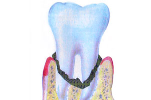 Nennt man eine chronische, oft unbemerkte Entzündung der Zahnfleischtaschen und des Knochens um die Zähne. Ursachen sind anaerobe Bakterien die sich in der Tasche an verkalkten Speiseresten anlagern. Die Bedingungen sind hier für die Mikroorganismen ideal, kein Sauerstoff, ständig neue Nahrung, die körpereigenen Abwehrkräfte können nicht zum Infektionsort gelangen, da im Zahnstein die notwendigen Venen und Arterien fehlen.